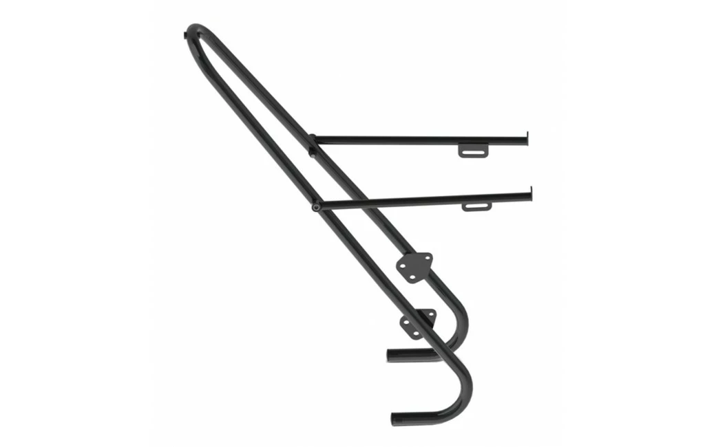 Il est en acier et résiste à une forte charge de plus de 10 kg à l’avant du vélo. Grâce à la barre stabilisatrice transversale, on peut rouler sans crainte de vibration dans le guidon avec le poids.