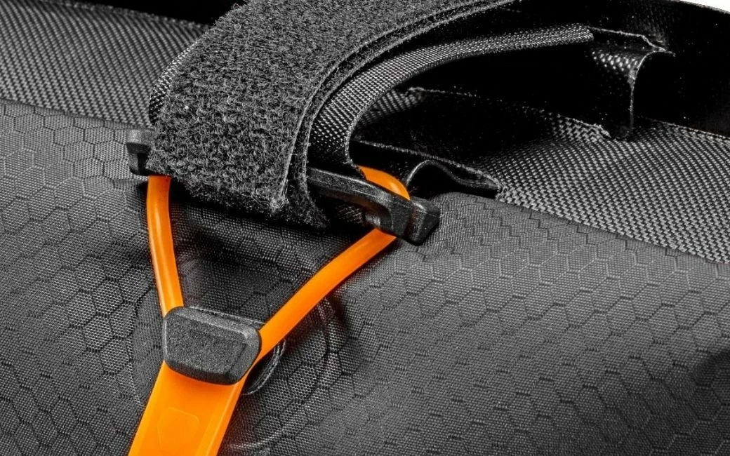 La sacoche Frame-Pack RC Toptube est la solution idéale pour tous ceux qui veulent continuer à pouvoir emporter des gourdes, même si leurs bagages sont casés dans le cadre. Cette sacoche de cadre étanche à l’eau à fermeture par enroulement est aussi idéale pour tous les VTT à suspension intégrale dont les amortisseurs limitent l’espace disponible dans le triangle du cadre. Grâce à sa fermeture par enroulement étanche à l’eau, sécurisée par trois anneaux en silicone, cette sacoche de notre ligne Bikepacking est conforme au standard IP 64, assurant ainsi une protection de votre équipement contre des bains inopinés. D’un volume de 4 litres, la Frame-Pack RC Toptube permet de ranger des pièces d’équipement lourdes, comme les piquets de tente, des outils ou des provisions, à l’intérieur du triangle du cadre, et d’abaisser le centre de gravité de votre vélo. Les fermetures auto-agrippantes de forte adhérence, robustes et à positionnement variable, permettent une fixation sans aucune difficulté sur le tube supérieur et au tube d’assise du vélo.