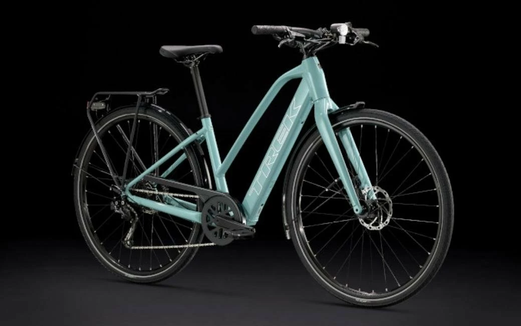 Un cadre ouvert léger en aluminium qui permet de monter et descendre facilement du vélo, le système d’assistance au pédalage exclusif de Trek doté d’un moteur-moyeu (250 W, 40 Nm) offrant une assistance allant jusqu’à 25 km/h et une batterie de 250 Wh pour une autonomie sur une distance allant jusqu’à 56 kilomètres par charge. Il est également doté de roues rapides 700c, de pneus rapides et stables 40c à flancs réfléchissants, d’une transmission Shimano fiable à 9 vitesses, de freins à disque hydrauliques, d’éclairages intégrés alimentés par la batterie, d’un porte-bagages arrière compatible MIK, de garde-boue et d’une béquille.